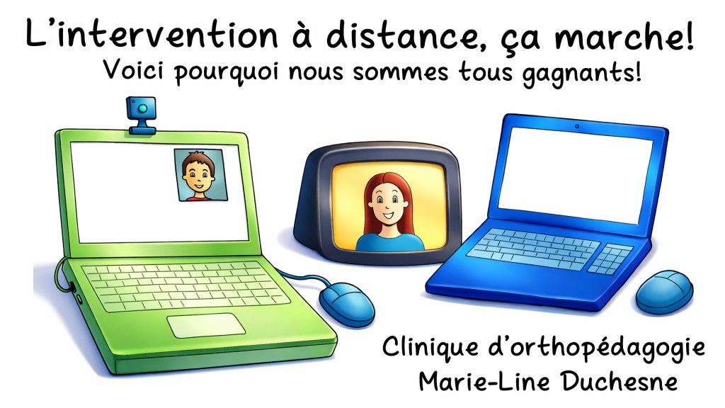 10. La stabilité de l’intervenante et le suivi à long terme : on ne se le cachera pas, ceux qui offrent leurs services pour du tutorat le font normalement en attendant d’avoir un poste dans les écoles. Le fait d’intervenir à distance me permet de travailler à temps plein comme orthopédagogue privée, ce qui serait impossible si je devais me déplacer entre les élèves.
